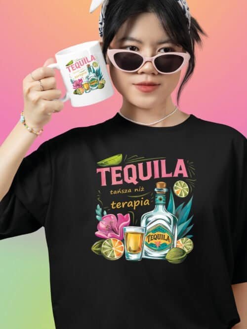 Zestaw Koszulka i Kubek Tequila tańsza niż terapia Zabawny Śmieszny
