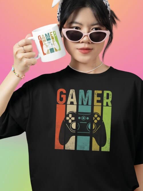 Zestaw Koszulka i Kubek Gamer dla Gracza z padem do konsoli