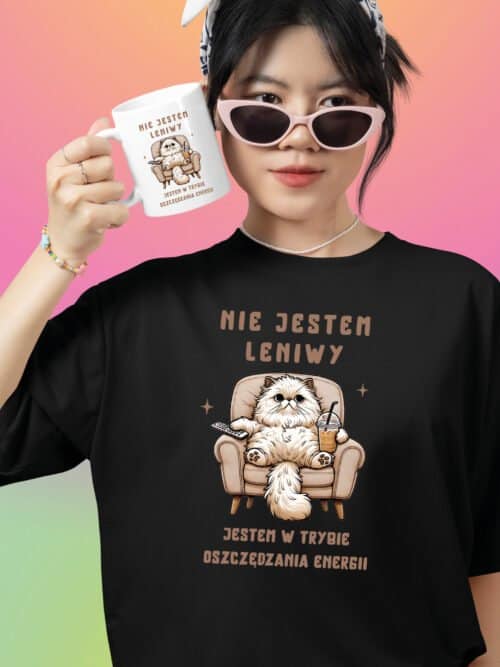 Zestaw Koszulka i Kubek Nie jestem leniwy Śmieszny Zabawny