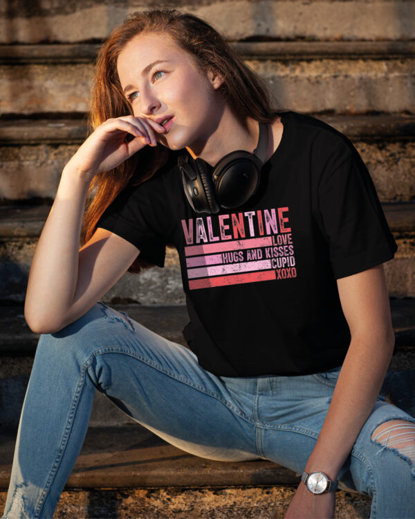 Stylowa koszulka z minimalistycznym nadrukiem w odcieniach różu i czerwieni to doskonały wybór na Walentynki. Napis „VALENTINE” uzupełniony słowami „LOVE”, „HUGS AND KISSES”, „CUPID” i „XOXO” tworzy modny i romantyczny design. Wykonana z miękkiej, wysokiej jakości bawełny, zapewnia komfort noszenia i idealnie pasuje do codziennych stylizacji oraz jako prezent dla bliskiej osoby.