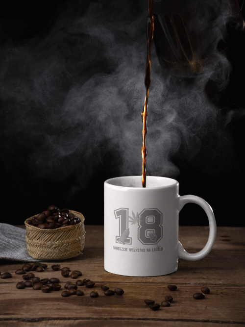 Kubek na 18 urodziny z napisem Wreszcie wszystko na legalu