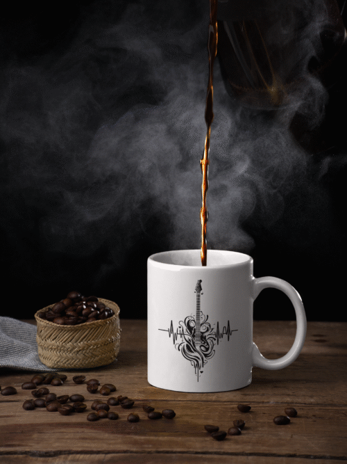 Kubek z gitarą elektryczną i linią życia
