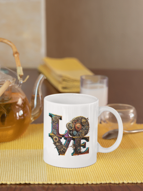 Kubek steampunk z napisem LOVE