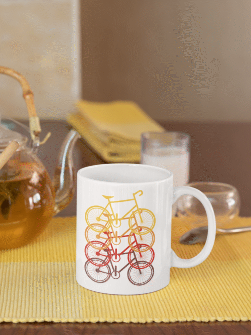 Kubek z rowerami w kolorze ombre minimalistyczny nadruk